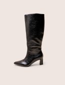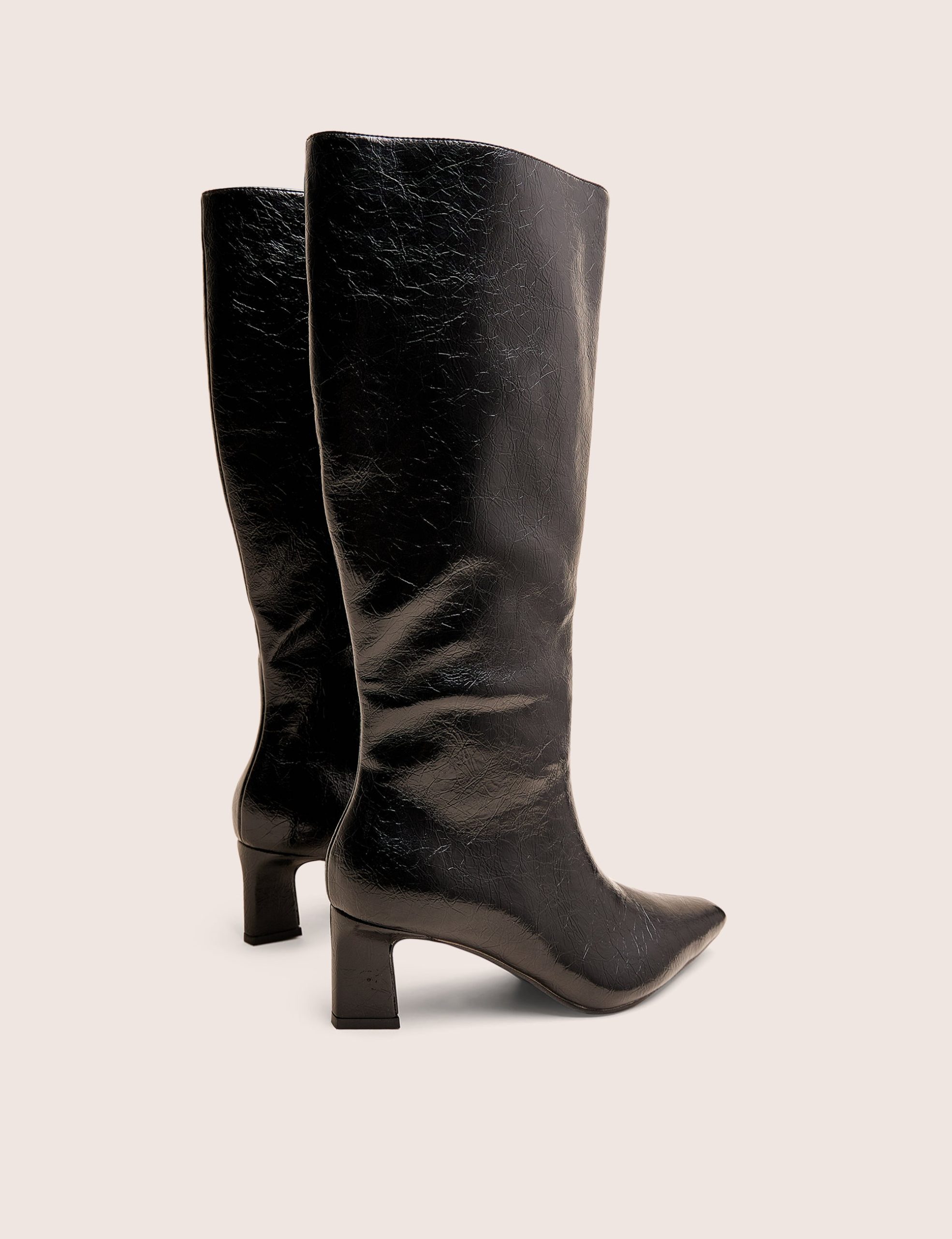 Elevate your wardrobe with the Boomer Black Crinkle PU Pointed Toe Knee High Mid Heel Boots. Featuring a distinctive crinkle texture and a sleek pointed toe, these boots offer a modern edge to the classic knee-high silhouette. The sturdy mid heel ensures comfortable wear while enhancing your height and posture. Perfect for adding bold sophistication to any outfit, these boots make a confident statement wherever you go.