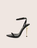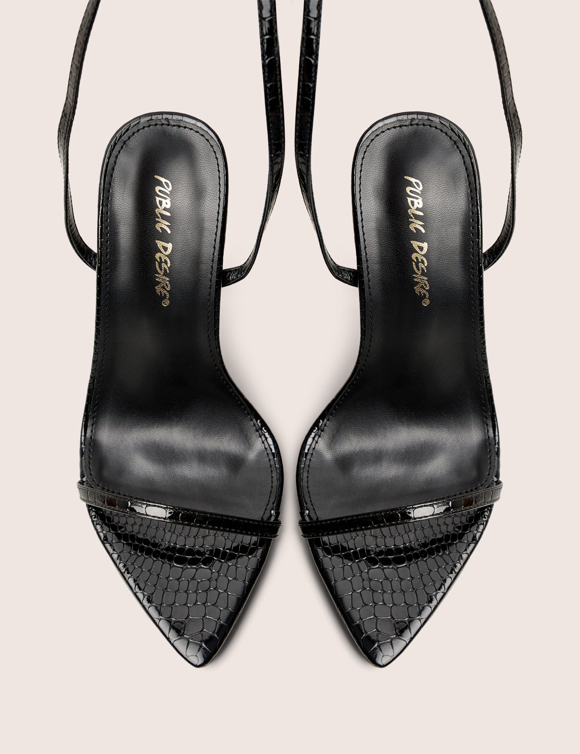 Strut around in style with these Legacy Wide Fit Black Patent Croc Barely There Pointed Toe Gold Stiletto Heels. Classy but definitely not basic – these trendy shoes will be your go-to for any occasion, no matter what you’re wearing! Knock ’em dead!